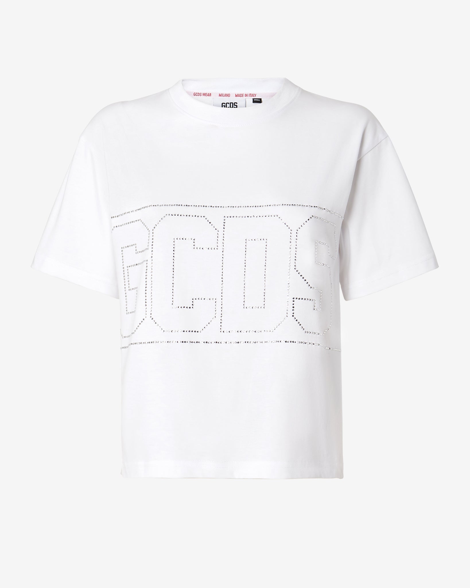 Cotton T-shirt with GCDS logo band artwork and rhinestones outline. Regular fit.